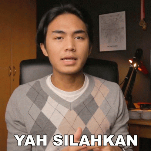 Zahid Azmi Ibrahim, wearing a gray argyle sweater, speaks the phrase 'Yah Silahkan' to the camera.