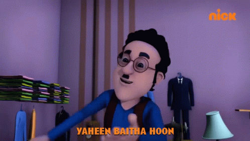 Cartoon character Ghasita Ram from Nick India says 'Yahin Baitha Hoon' (I am sitting here).