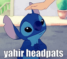 Yahir gives Stitch gentle headpats, making the blue alien character happy.