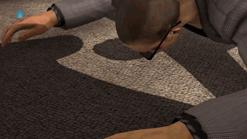 a man in a suit is laying on the floor with his hands on his chest