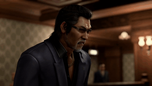 a man with a beard and sunglasses is wearing a suit and a chain around his neck