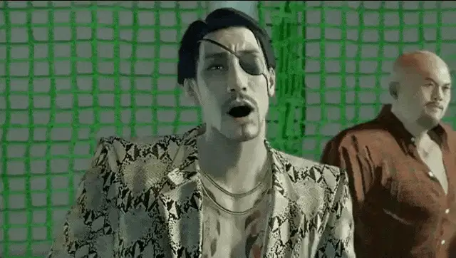 Kiryu Kazuma from Yakuza offers V-Bucks to pay for something, with Russian text overlay.