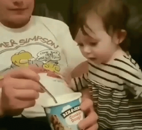 Man teases toddler with Ben & Jerry's ice cream, eating it himself after she opens her mouth in anticipation.
