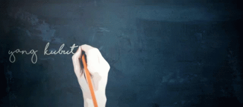 A hand writes 'Yang Kubutuhkan Waktu Kita Bicara' on a blackboard, the title of a song by Geisha.