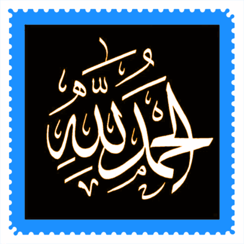 Arabic calligraphy of 'Alhamdulillah' (Praise be to Allah) with a prayer for a righteous spouse and offspring, animated with flowers.