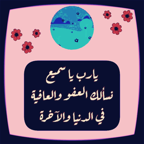 A heartfelt Arabic prayer: 'Oh Lord, the All-Hearing, we ask You for forgiveness and well-being,' displayed with vibrant flowers.
