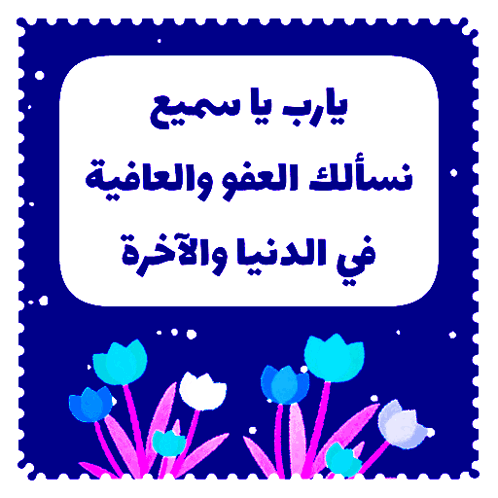 A prayer asking God, the All-Hearing, for forgiveness and well-being in this world and the hereafter, with a floral background.