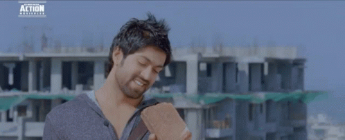 Yash Boss Yash08, the Rocking Star, smiles while holding a brick at a construction site.