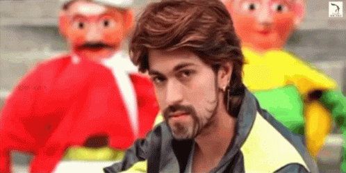 Yash, the actor, winks at the camera with colorful cartoon figures in the background.