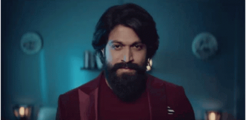Indian actor Yash, also known as Yash08 and Rocking Star, looks confidently at the camera in a red suit.