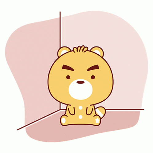 An adorable cartoon bear sits in a corner, looking tired and yawning widely.