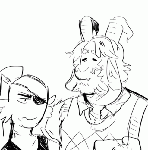 Asgore Dreemurr yawns contagiously next to Undyne in this black and white animated drawing.