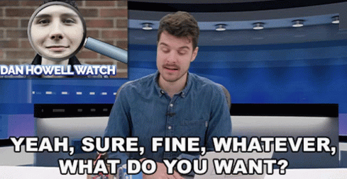 Benedict Townsend expresses indifference with 'Yeah Sure Fine Whatever, What Do You Want?' in a news-style setting.