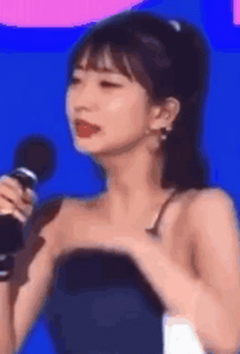 Yeojin Loona crying emotionally while holding a microphone on stage, visibly upset during a performance or event.
