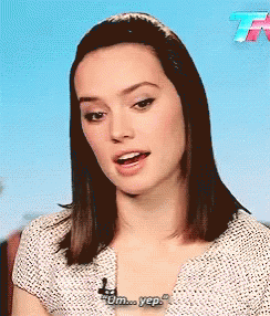 Daisy Ridley, known for Rey, says 'Um... yep' with a subtle smile.