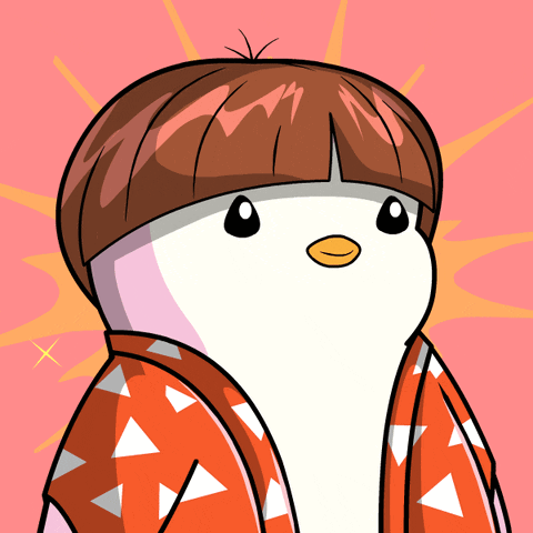 A cute Pudgy Penguin winks and smiles, wearing a stylish kimono-style jacket.