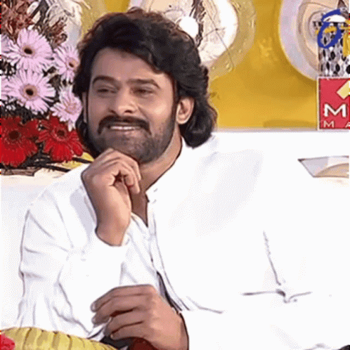 Prabhas, the Bahubali star, smiles and nods, conveying a sense of importance and agreement.