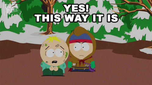 Butters and Stan from South Park, with Butters looking confused as Stan points, saying 'Yes! This Way It Is'.