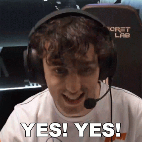 Micha Brooks, wearing headphones and a microphone, enthusiastically says "Yes! Yes! Creamcheese!"