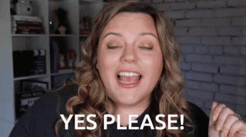 mrsdesireerose enthusiastically says 'Yes Please!' with a bright smile and expressive eyes.
