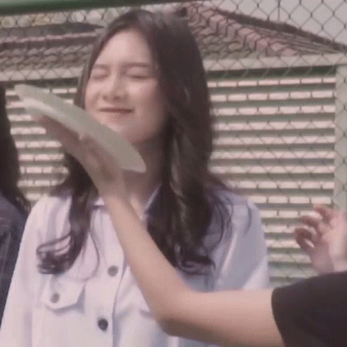JKT48 member Yessica Tamara, also known as Chika, gets a playful 'pie face' with a paper plate.