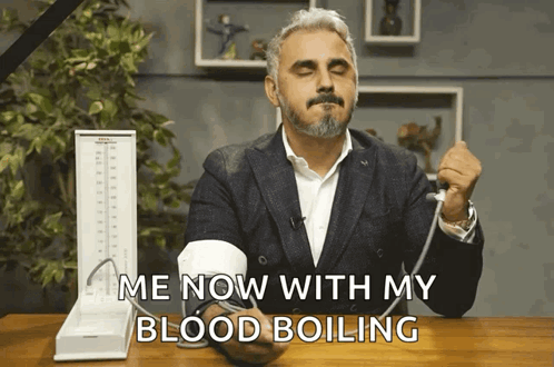 Bader Saleh takes his blood pressure, expressing intense anger with the caption 'ME NOW WITH MY BLOOD BOILING'.