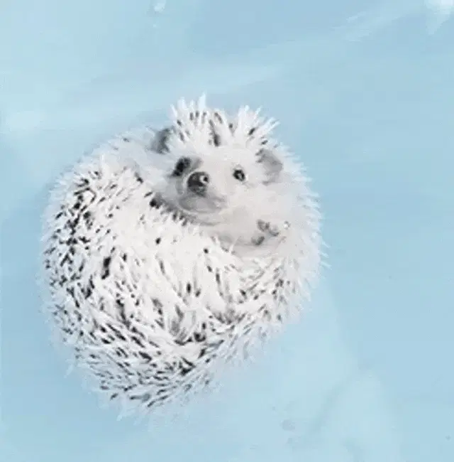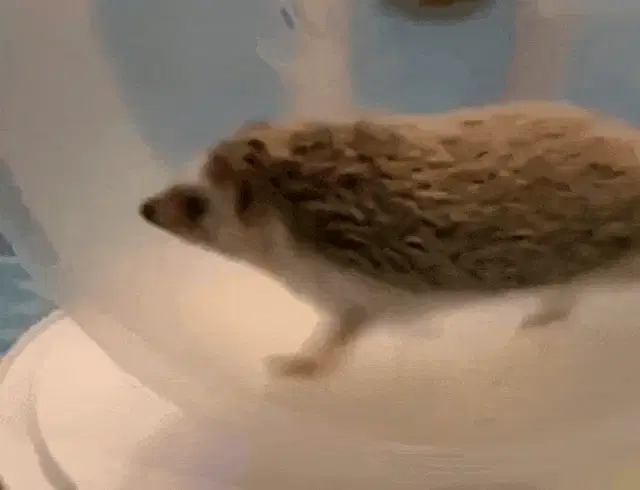 A cute hedgehog reacts excitedly to delicious food, with its tongue out and mouth open.