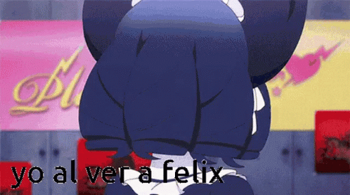 An adorable anime character reacts with overwhelming love and hearts upon seeing Felix, a popular meme.
