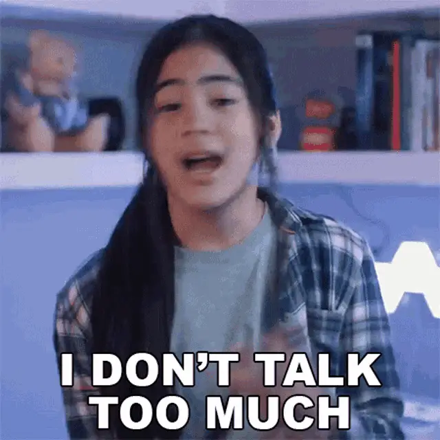 A woman with a pink towel on her head animatedly confesses to being very gossipy while holding a phone.