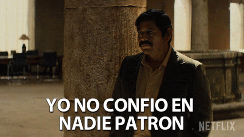 A man from Narcos Mexico states, 'Yo no confio en nadie patron' (I don't trust anyone, boss).