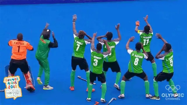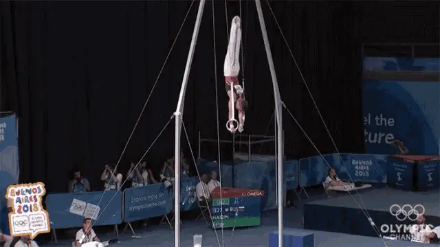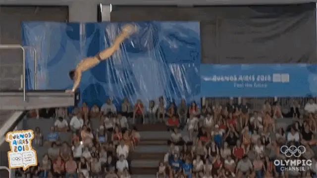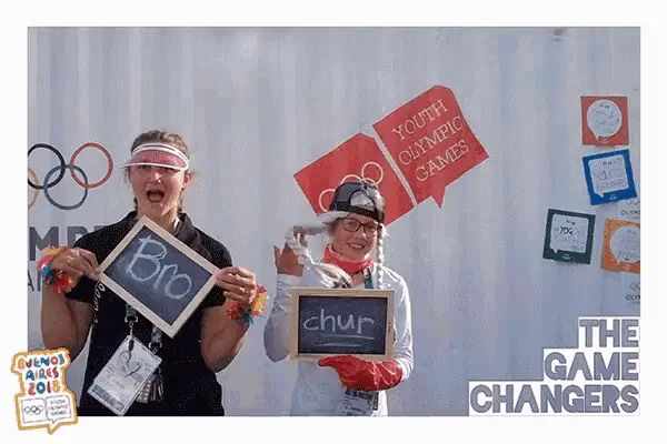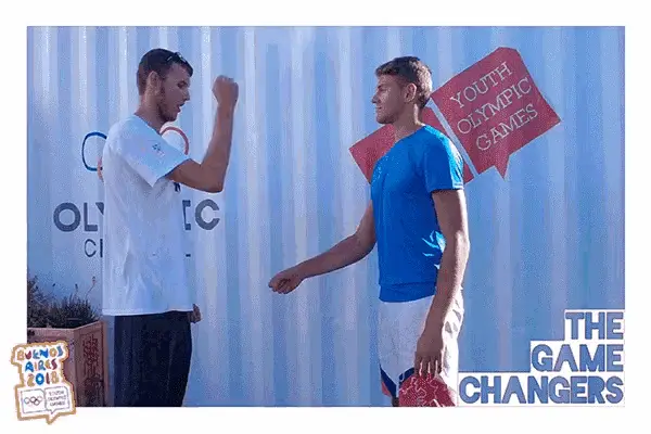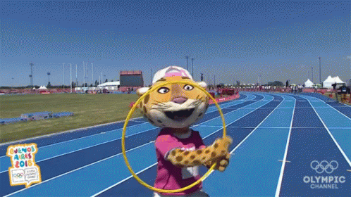 Pandi, the Youth Olympic Games mascot, joyfully hula hoops on a blue track at Buenos Aires 2018.