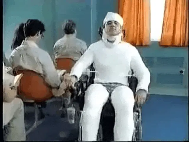 Yoli Yolinda, also known as Yoli Silla, walks into a room with pink lighting and moves a white chair.