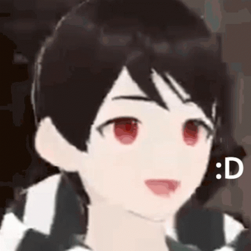 Yooter Yuti, the VTuber, smiles brightly with red eyes, accompanied by a playful ':D' emote.