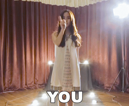 Agatha Chelsea performs in a white dress with the word 'YOU' on the floor.