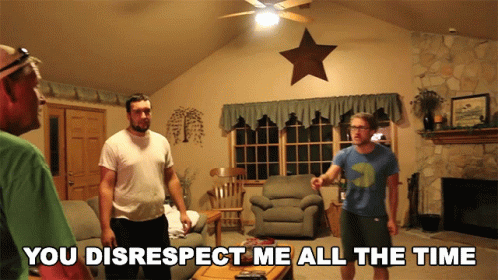 A man, part of McJuggernuggets, angrily confronts others, stating 'You disrespect me all the time'.