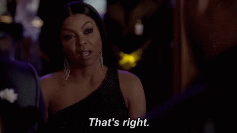 Taraji P. Henson as Cookie Lyons confidently states, 'That's right,' in a stylish black dress.