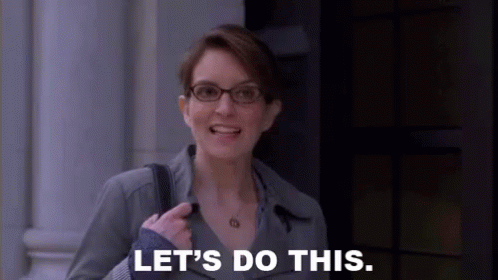 Tina Fey as Liz Lemon from 30 Rock confidently declares 'Let's do this' while walking down the street.