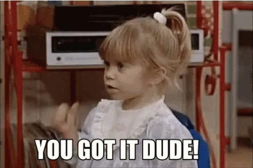 Ashley Olsen as Michelle Tanner gives a thumbs up and says 'You Got It Dude!' from Full House.