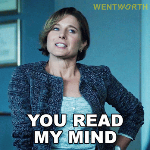 Bridget Westfall from Wentworth says 'You Read My Mind' with a knowing expression.