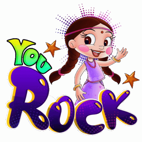 Chutki from Chhota Bheem waves cheerfully next to a 'You Rock' message.