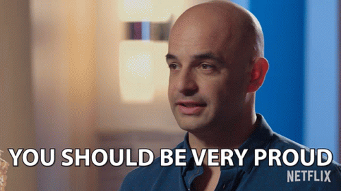 A bald man from a Netflix show, likely Sugar Rush, delivers an encouraging message: 'You should be very proud'.