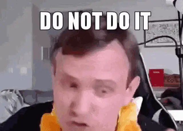 A pixelated man with an intense expression says 'you won't!' in a dramatic moment.