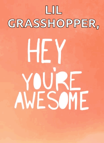 Uplifting message: 'Lil Grasshopper, Hey You're Awesome' displayed on a changing background.