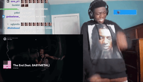 Young Dabo reacts to Lil Uzi Vert's 'The End' featuring BABYMETAL, with Twitch chat visible.