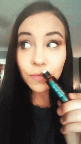A woman applies Young Living Doterra Deep Relief essential oil to her temple, showcasing its use for wellness.
