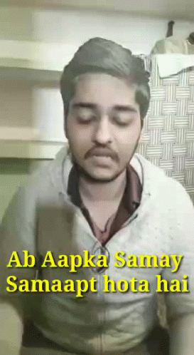 A man with closed eyes is shown with the Hindi caption 'Ab Aapka Samay Samaapt hota hai' meaning 'Your time is finished'.
