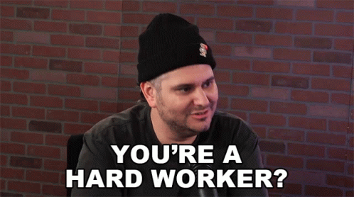 Ethan Klein, wearing a black beanie, asks the viewer if they are a hard worker during an H3 Podcast segment.