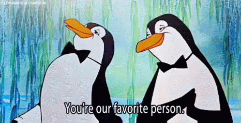 Two animated penguins from Mary Poppins declare, 'You're our favorite person.'