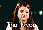 Selena Gomez expresses gratitude with a changing emotional expression, from tearful to a slight smile.