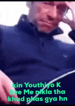 Man with glasses reacting to being called 'Youthia' with a smile, as Hindi caption reads 'That's why they call you YOUTHIA (BC)'.